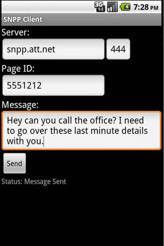 A SNPP v1 Client that will connect to a specified SNPP Server directly from your Android device and send your message to the ID.