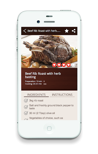 Sei uno chef acuto, ma intimidito da carne bovina?O esaurisci idee per quel prossimo pasto familiare?Manzo Easy è un'app di ricetta con una selezione in costante crescita di deliziose ricette di manzo preparate dai nostri chef professionisti.È facile da usare, per mobile-friendly e anche fornisce consigli utili su quali tagli di carni bovine da acquistare e dove trovare punti vendita che il manzo di qualità di riserva nella tua zona.