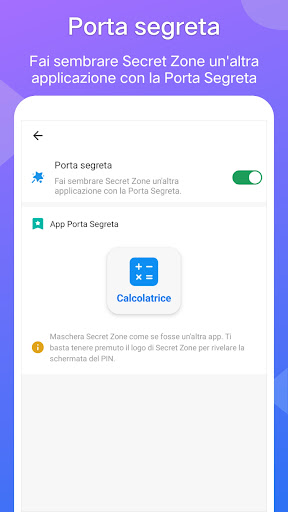- Fai sembrare Secret Zone un'altra applicazione con la Porta Segreta.