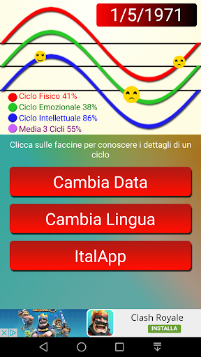 Bioritmo Pro è un calcolatore di cicli del bioritmo che ti permetterà di sapere ogni giorno le condizioni dei tuoi tre cicli primari, il ciclo fisico, il ciclo emozionale e il ciclo intellettuale.
