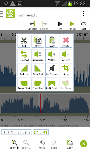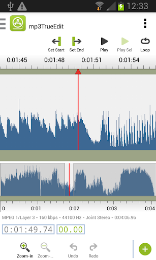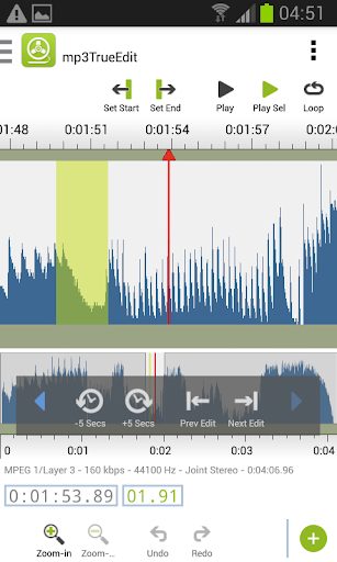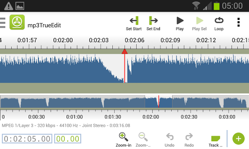 mp3trueedit Conosce il formato interno dei file audio MP3 e AAC e dei suoi algoritmi avanzati consentono di effettuare tutte le sue modifiche senza alcuna perdita di qualità audio o corruzioni di file. Non è necessario decomprimere e ricomprimere l'audio per effettuare qualsiasi modifica o visualizzare l'audio, quindi è un fulmine veloce, anche con file audio di grandi dimensioni.