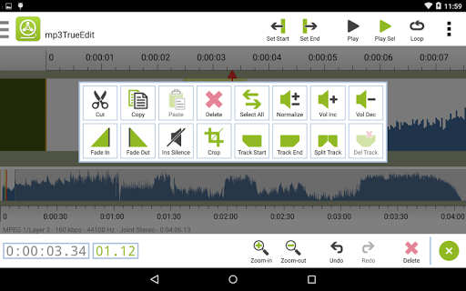 e questo mp3trueedit ti consente di unire file audio dello stesso tipo (aggiungendoli) o dividere l'audio in file separati creando tracce nella versione 'Pro' o esportando l'audio selezionato nella versione gratuita .