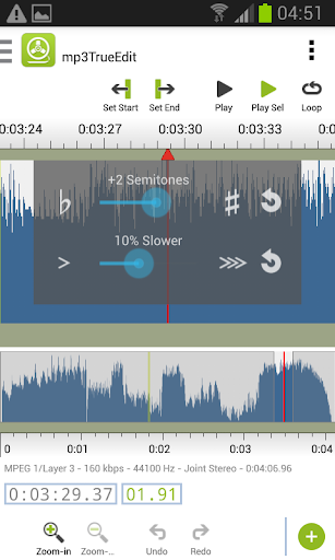 Con MP3trueedit puoi facilmente registrare, modificare, riprodurre e creare progetti audio MP3 e AAC che consentono di salvare il tuo lavoro in qualsiasi momento. Quindi, puoi quindi "esportare" le tue modifiche senza alcuna perdita di qualità! Durante la riproduzione o la conversione è anche possibile modificare il pitch o il tempo per soddisfare le vostre esigenze, sebbene il cambio di tono e il tempo comporterà qualche perdita di qualità.