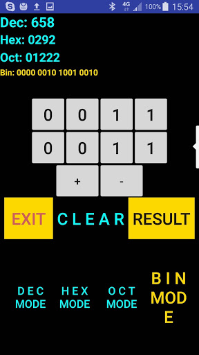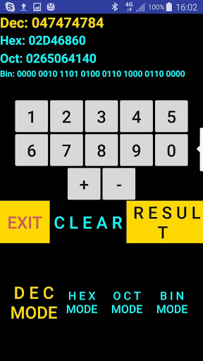 Calcolatore per numeri fino a 256 bit, esegue solo addizioni e sottrazioni, permette l'input in formato decimale, esadecimale, binario, ottale e da' l'output in tutti i formati. Supporta numeri negativi.
