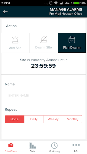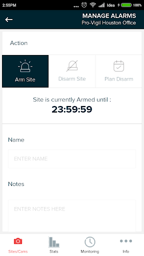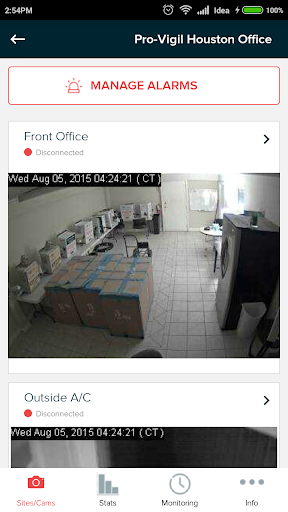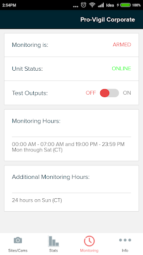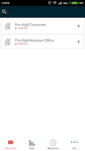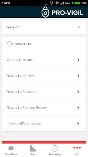 The Pro-Vigil application lets you view your sites and cameras from your mobile phone. You can arm and disarm your site, view the status of your site, order new units or request support, or view and steer your cameras anywhere you have an internet connection.