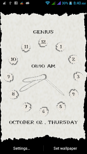 Simple Clock with torn paper effect with single white color theme