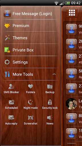 Un tema di legno mogano bello e pulito per Go SMS Pro.