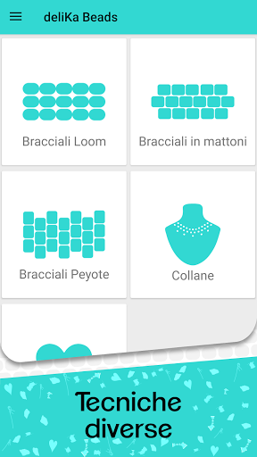 La nostra app è divisa in tre sezioni per i braccialetti e una per le collane.