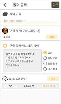 : 폴더를 조건 및 일시에 맞추어 자동으로 동기화하여 어느 기기에서나 파일을 사용할 수 있도록 합니다.
