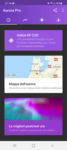Se desideri gli ultimi aggiornamenti sull'attività geomagnetica e ti diverti a vedere l'aurora boreale, questa è l'app che fa per te.