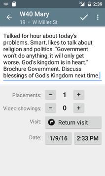 Powerful service organizer for Jehovah's Witnesses. Keep records, track statistics and service time, conveniently view and arrange territories and interested persons in an automated and intuitive way.