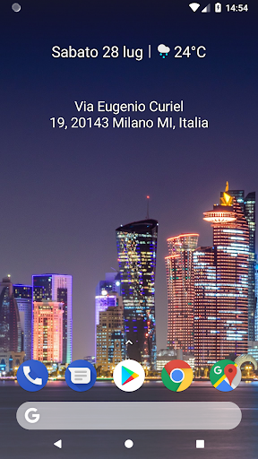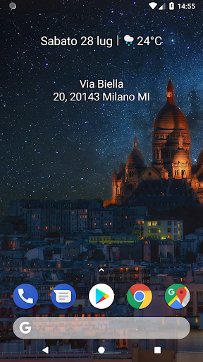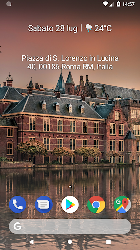 Personalizza il colore, le dimensioni e l'allineamento dei caratteri in base allo sfondo e al Paese. Tocca il widget per aggiornare il tuo indirizzo attuale. Il widget non si aggiorna periodicamente per conservare la batteria. Ma si aggiornerà ogni volta che lo schermo si accende. Richiede servizio di localizzazione e permesso.