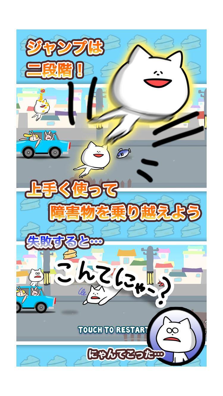 LINEスタンプで販売中の「にゃーすた」キャラクターがAndroidで大活躍。 ぶさかわ?きもかわ?な白猫ちゃんが、ジャンプしながら街をお散歩。 スペシャルアイテム=鯛を取るとゲージがたまり、5個獲得すると!!! 操作はタップのみの簡単操作。 小さいお子様からお年寄りまで、誰でも遊べるお気軽ゲームです。 LINEスタンプ https://store.line.me/stickershop/product/1005124/ja