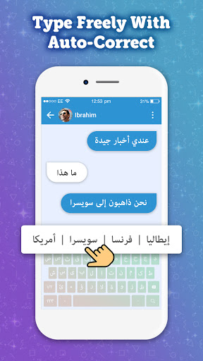 • Auto Correction: Fast and intelligent Auto word correction makes Arabic typing more easily. It also includes next word prediction and auto-text typing ability.