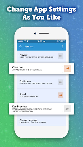 • New English and Arabic Keyboard: Switch between Arabic and English keyboard with a tab. Type in multiple languages with one tap switch keyboard feature.