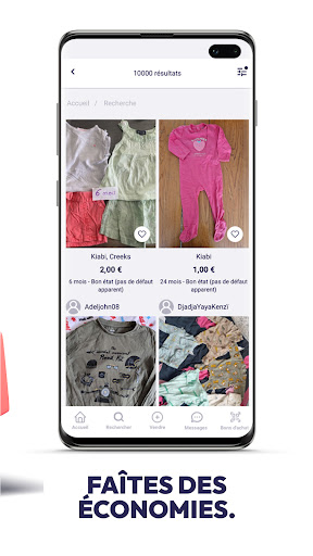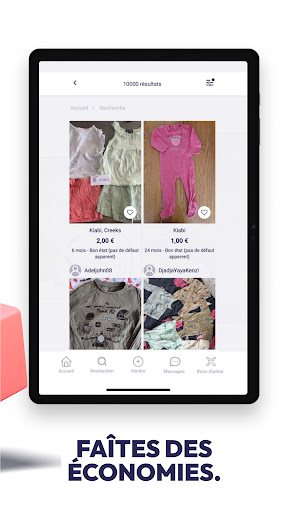 Habillement Femme, Homme, Enfant et Bébé : l'application rassemble une large gamme de vêtements et accessoires prêt-à-porter toutes marques (Zara, Mango, H&M, Verbaudet...) pour vous offrir des articles de qualité et des vêtements en bon état.