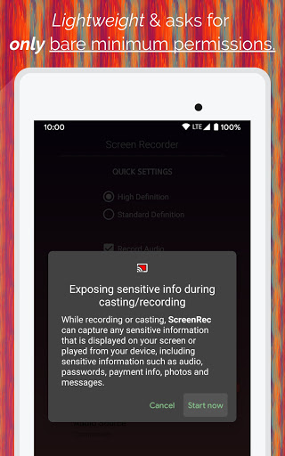 ScreenRec screen recorder for android is a very simple, clean UI and easy to use android screen recorder app. It is lightweight and lot less resource draining than other screen recorders.