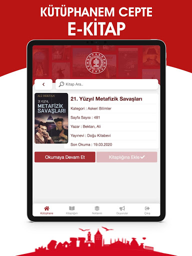 Kütüphanem Cepte E-kitap uygulaması ile kendi kitaplığınızı oluşturabilir, online e-kitap okuyabilir, not alabilir ve kaldığınız yerden okumaya devam edebilirsiniz.