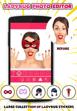 Forget about regular face makeup beauty because this ladybug face changer application lets you explore all magic power effects and superhero yourself with just a couple of simple but effective face filters without need of photoshop? Just download this Ladybug dressup camera and discover everything about your superhero games to create a special Virtual Makeover or simply a Halloween dress up.