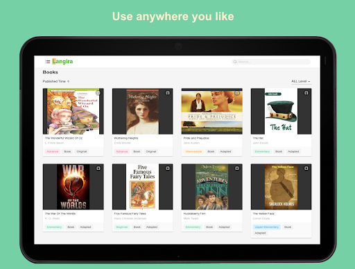 Langira ti aiuta a praticare l'inglese a leggere, ascoltare, parlare e migliorare il vocabolario con migliaia di audiolibri più venduti e altri articoli audio inglesi.