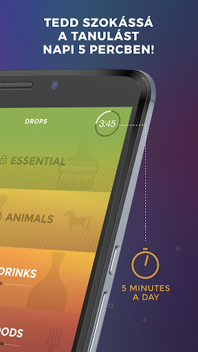 Drops limits your learning time to 5 minutes. This might sound crazy but works like charm. Learning a new language might feel overwhelming but by chunking down into 5-minute sprints, the barrier of entry is nonexistent. No excuses: you ALWAYS have 5 minutes!