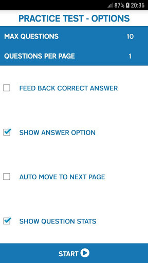 • You can select the type of questions you want to appear in the test from occasionally wrong to wrong everytime and more.