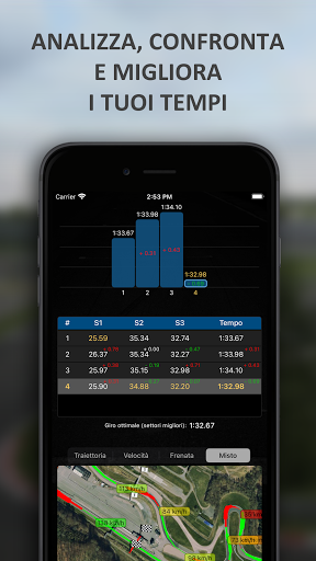 ∙ Visualizzazione in tempo reale dei tuoi tempi per giro e per settore