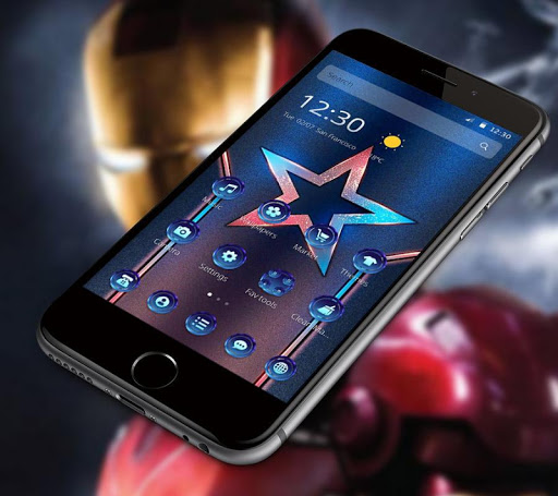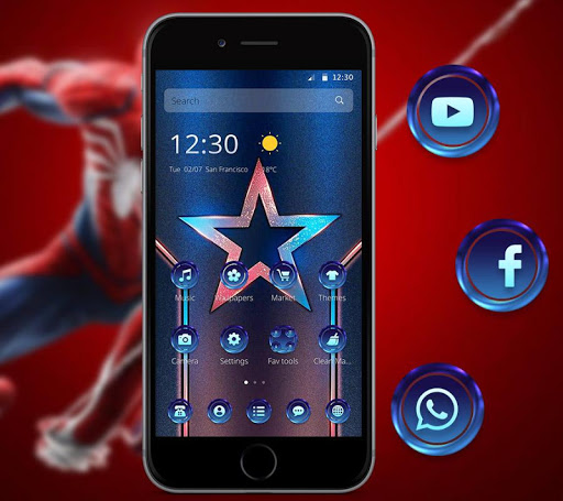 -😍Glitter super(supreme) Star Hero Theme icons using a simple shining design.fantasy illusory star&stardust into the shining of the simple red glitter spider icons, dotted with the blue blue star hero wallpaper below. 3D dynamic effects of the theme icon, and the 3D main screen of the blue star hero and the weather with 3D motion.