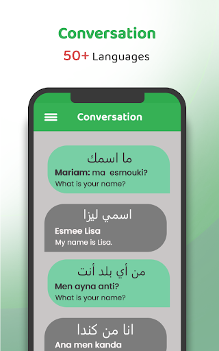 traduci testo o discorso dall'arabo a un'altra lingua o viceversa.Inoltre, questa app di apprendimento arabo include uno strumento traduttore per tutte le lingue.Puoi tradurre istantaneamente le parole e le frasi desiderate in qualsiasi lingua.Ora, non perdere mai l'occasione di comunicare con nessuno, ovunque, in qualsiasi lingua.