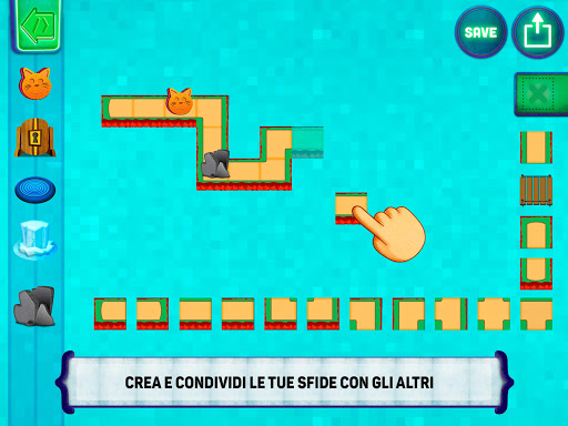 CREA LE TUE MAPPE E LE TUE SFIDE! Diventa un programmatore esperto e crea e condividi i tuoi livelli. I genitori e gli insegnanti possono anche creare sfide per i figli o gli studenti.
