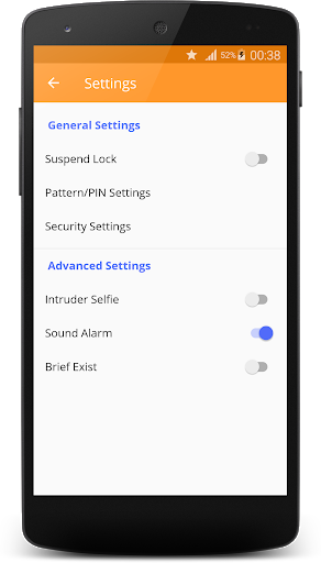 protected app entry with a PIN or Pattern lock.