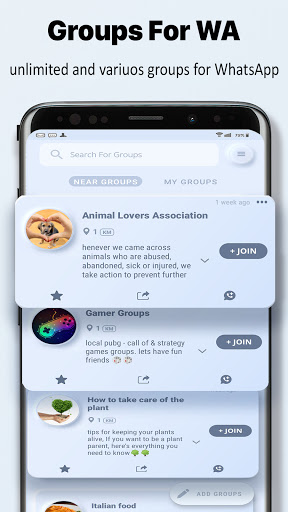 Gruppi per WA è un'app per la ricerca di gruppi locali e mondiali in base al tuo desiderio, puoi creare i tuoi gruppi e condividerli con utenti con tags
