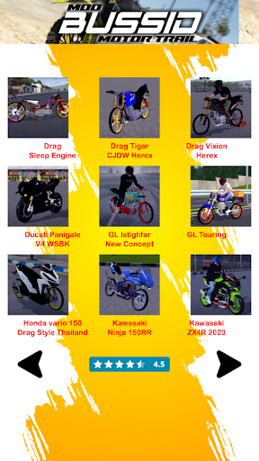 Oltre alla cool di corse motorie di BussID, forniamo anche una varietà di mod a moto selvatiche come nelle soap opera.Ci sono una varietà di motociclette di corse motorie selvagge BUSSID fantastiche come la collezione MOD BUSID Supermoto con un modello interessante.Poi c'è la versione mod più ricercata della mod Ninja.Poi c'è il famoso Big Bike Bike Bussid e molte altre corse motorie di busid che non sono meno fredde.