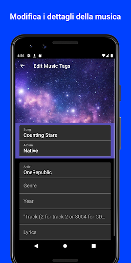 - Modifica tag audio come titolo, artista, nome dell'album, copertina dell'album, genere e testo.