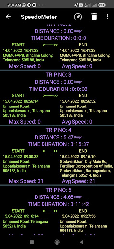 In questo viaggio ha coperto la velocità massima, la velocità media e la durata del tempo, i dettagli del punto di partenza (tempo, indirizzo) e i dettagli del punto finale (tempo, indirizzo)