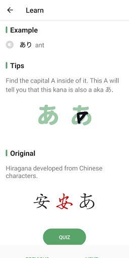 Questa app giapponese offre un modo semplice ed efficace per imparare il giapponese hiragana e giapponese katakana.