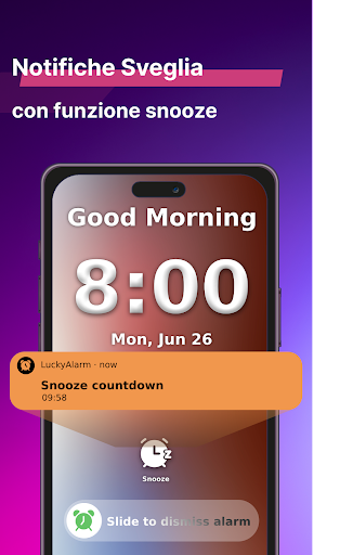 Scarica 'LuckyAlarm Alarm Clock: Colorful Wake' oggi e rivoluziona le tue mattine con ispirazione, fortuna e musica!