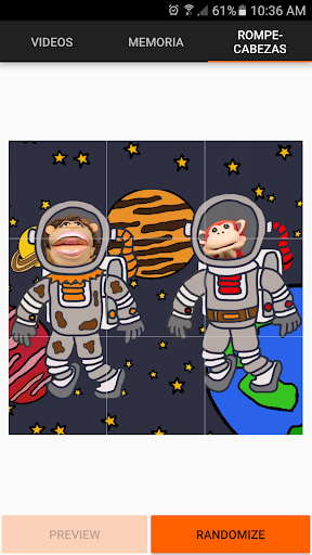 Troverai anche un gioco di memoria, dove dovrai colpire le coppie silenziose di questo tipo che sono nascoste il bordo.E infine, c'è un gioco molto difficile per farlo riunire un puzzle con la foto della scimmia silabo e nícola cavernicola.