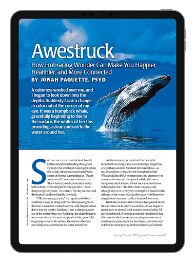 Luce di coscienza: il journal del risveglio spirituale è stato chiamato "il best -prodotto prodotto sul pensiero spirituale e yogico". Questa rivista altamente acclamata è nota per la purezza della sua presentazione della spiritualità e il suo audace approccio interreligioso all'unità alla base di tutti i percorsi e tradizioni, nonché per l'interfaccia emergente tra scienza e spiritualità. Ogni numero trimestrale include articoli eccezionali, poesie e arte: ispirazione e incoraggiamento per trasformare noi stessi e il nostro mondo.
