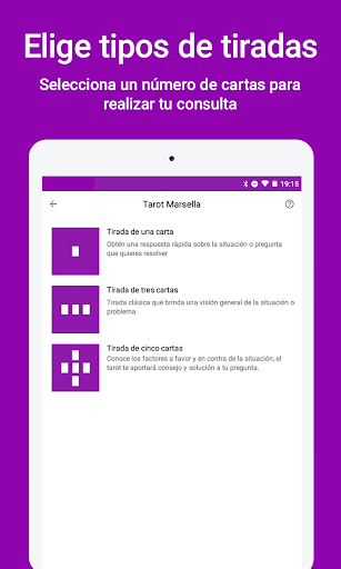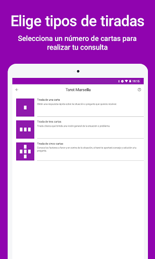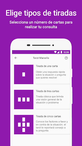 . Tarocchi Marsiglia, Tarocchi Sì o No, Tarocchi giornalieri, Tarocchi d'amore, Tarocchi di salute, Tarocchi di denaro, Tarocchi di lavoro.