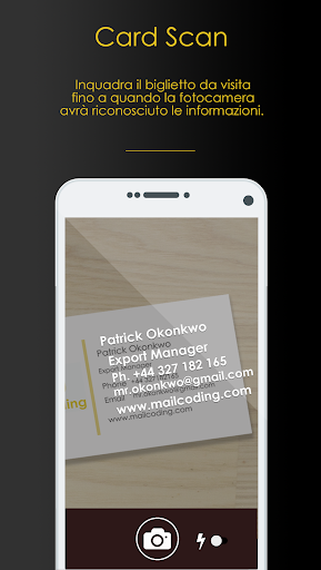 - acquisisci i tradizionali biglietti da visita via OCR e se trovi un altro utente mailcode, velocizza la connessione cercando il numero univoco della sua card.