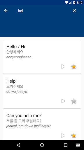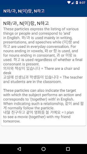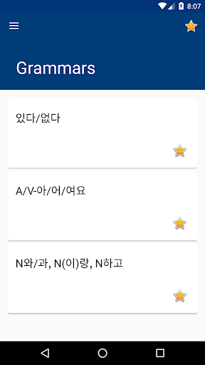 Learn Korean the easy way! Features - Learn Hangul - Search for common phrases - 5000 vocabularies with meaning - Grammars with explanations and usages for TOPIK - Favorites - Voices - Notes Roadmap - Quiz