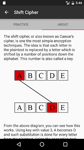 Ever wondered how your information is stored securely? You can learn it now! With this app you can learn about encryption and see how it works by encrypting and decrypting your own text using different methods. Please note the app is still in development and more methods will be added later on - such as transposition (columnar), RSA, DES, AES and other. Any feedback will be appreciated.