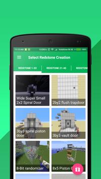 Redstone Builder for Minecraft pe app contain all categories like redstone schemes | Advanced | Redstone farms | Redstone Piston doors | Mechanisms | Redstone houses..etc