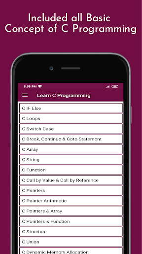 • Contiene tutti i concetti di base della programmazione 'C' lingua (lingua C).