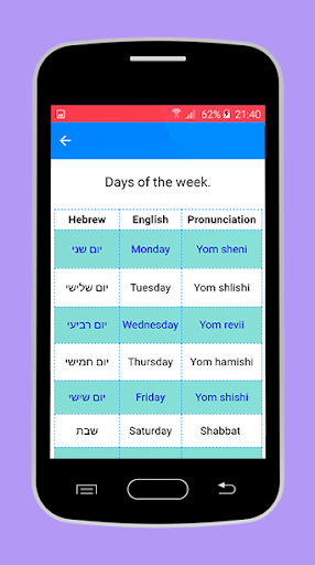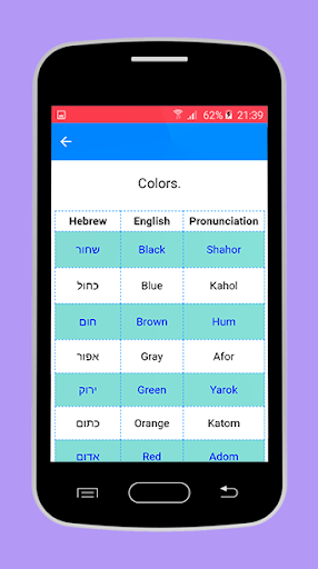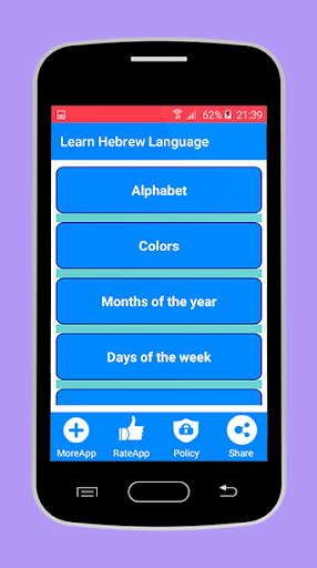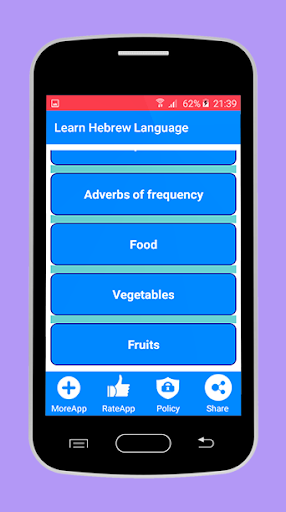 Applicazione utile Per imparare il linguaggio e il vocabolario ebraico L'app è comprende tutto il vocabolario di ebraico e pronuncia e con il linguaggio inglese.