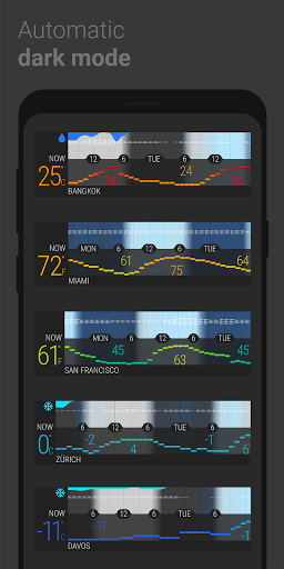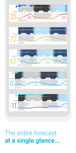 Ricevi un quadro completo della situazione Meteo: Temperatura, precipitazioni, vento, e nuvolosità vengono mostrate tutte in una modalità compatta, però facile da capire.