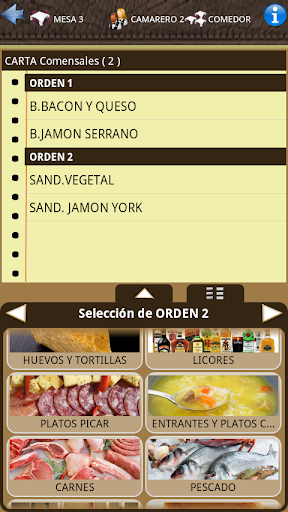 El camarero simplemente tiene que seleccionar la mesa e ir añadiendo los productos que le pida el cliente, y al finalizar enviar la comanda.