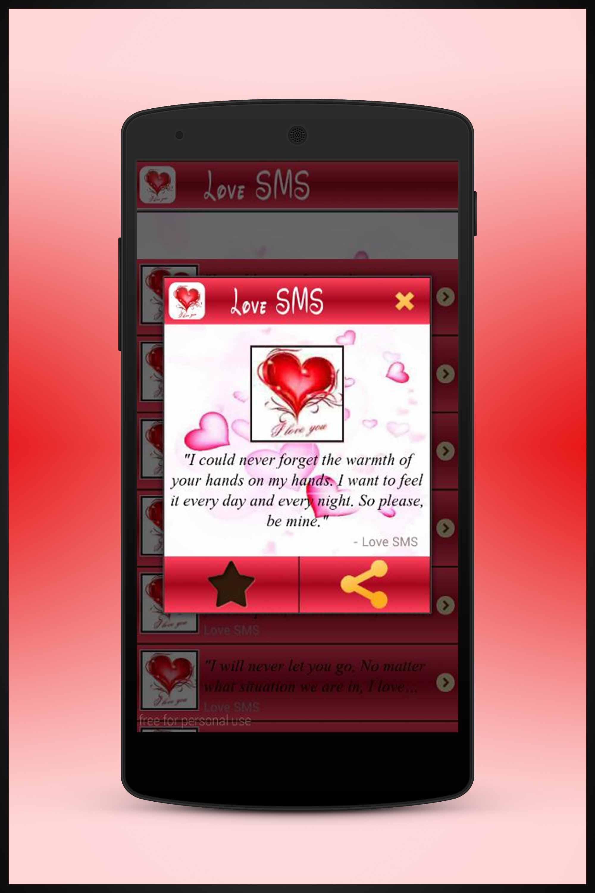 Love SMS - Express your feelings of love and compassion by sending lovely SMS to your love ones. Love and care removes the distance of two hearts, checkout our best Love SMS collection and send it to your love. Feel free to share your Love SMS that you like. Find 2015 largest collection of Cute English Love Sms messages at application Romantic LOVE messages .