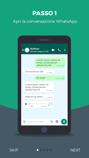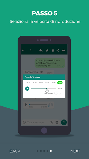 - Controllo della velocità per i messaggi audio. Sarai in grado di saltare i silenzi imbarazzanti.